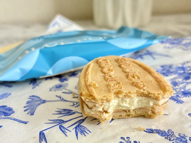 実際に食べてみました。ザクザクのクリスピー生地の食感が良いですね。ふわふわのホワイトショコラも美味!キャラメル味のものは甘味が強く、味が濃いものもありますが、こちらは程よい甘さでとても美味しいです。